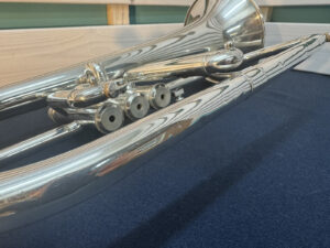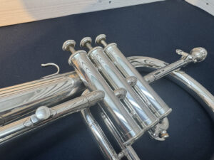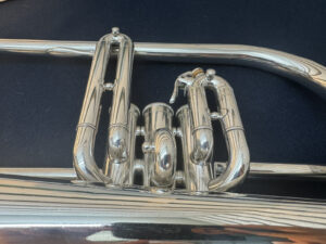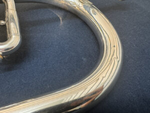 工房による洗浄と改造修理済み。凹みに関して演奏には支障ございません。
